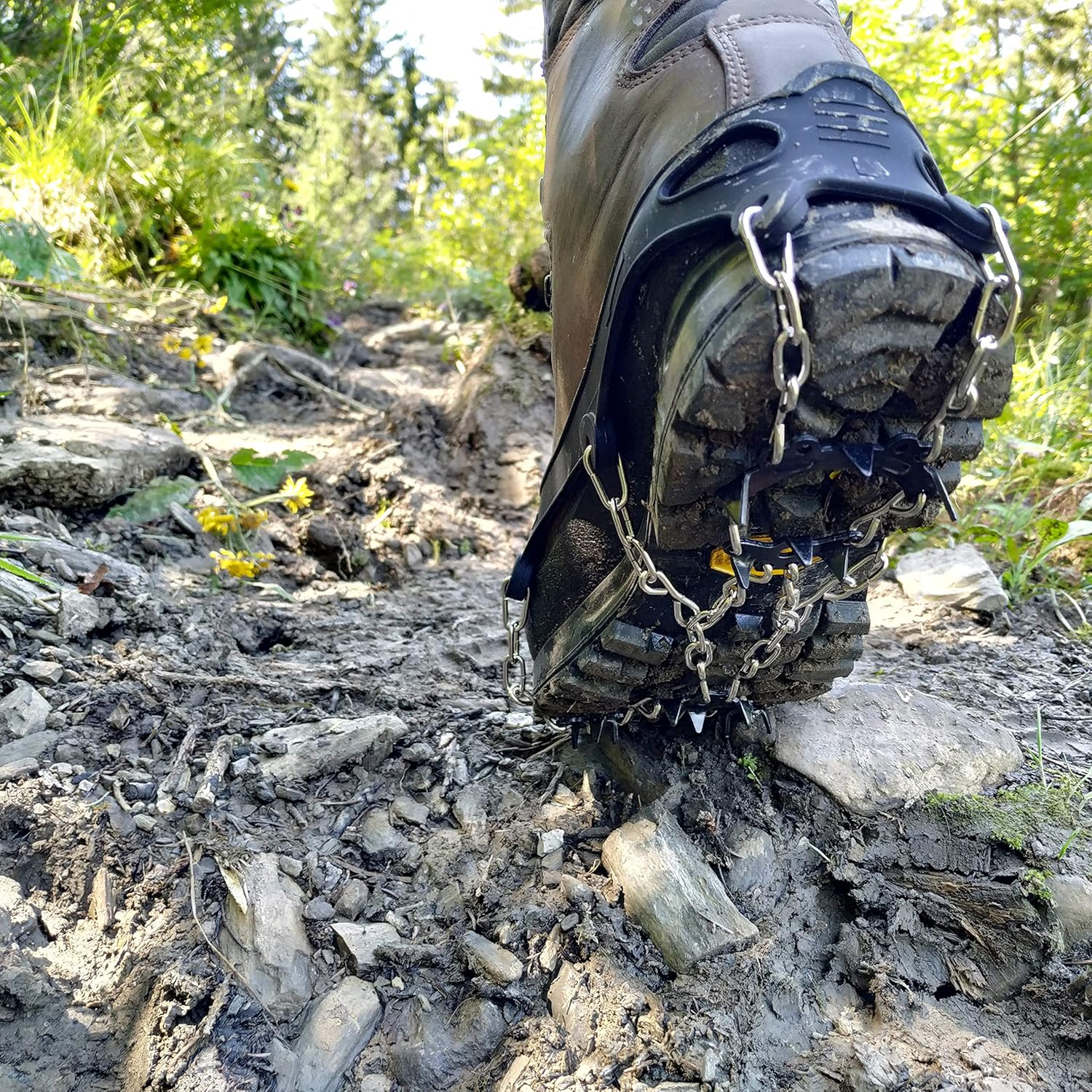 Ultraleicht. Robust. Schnell montiert. Diese Schuhspikes liefern dir verlässlichen Halt auf glatten Wegen, vereisten Steigen und matschigen Pfaden. Hochwertiger, rostfreier Edelstahl trifft auf elastische Bänder für perfekten Sitz und lange Lebensdauer.